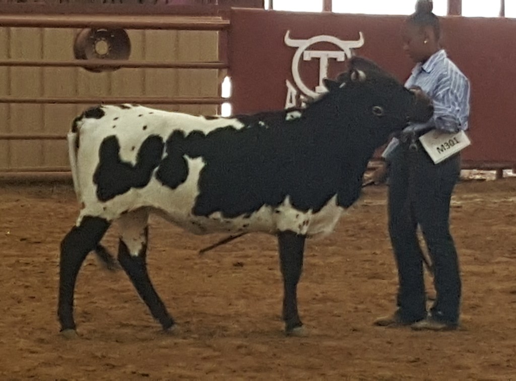 Jesse James x Monopoly Pretty Black on white heifer. Has had a good start in the show ring.