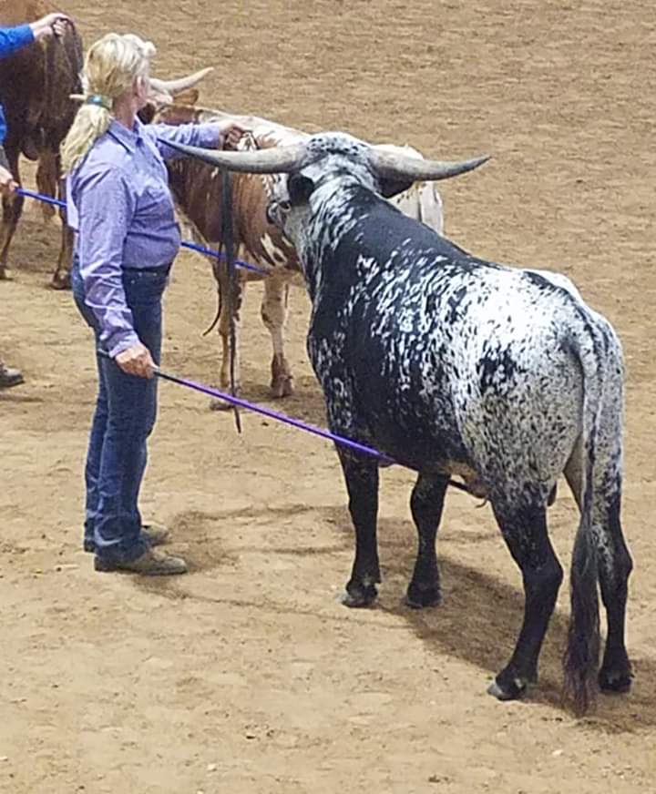 5/05/2019 Pretty speckled and roaned bull that we are currently showing. 2020 ITLA World Grand Champion Miniature Bull.